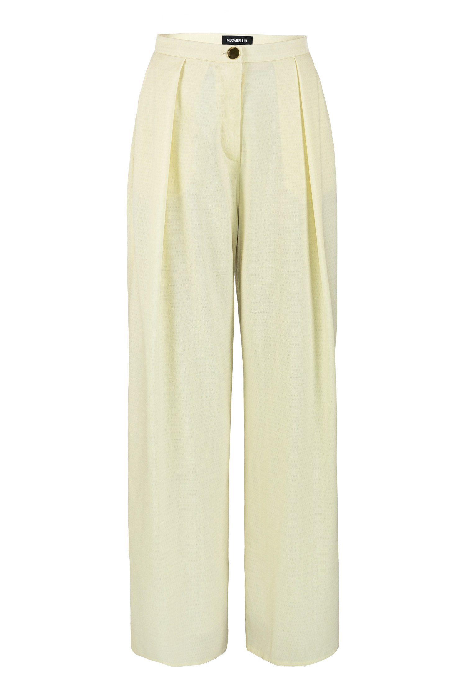 Relaxed straight-leg pants crafted from a lightweight fabric with a tonal pinstripe texture. Designed with a wide elastic waistband and adjustable drawstring for comfort, they feature a subtle metallic logo detail at the waist. The olive hue and refined texture lend a modern, versatile look suitable for both casual and elevated styling.
